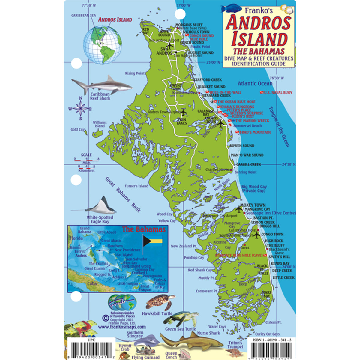 Andros Island Bahamas Dive Map & Reef Creatures Guide Franko Maps