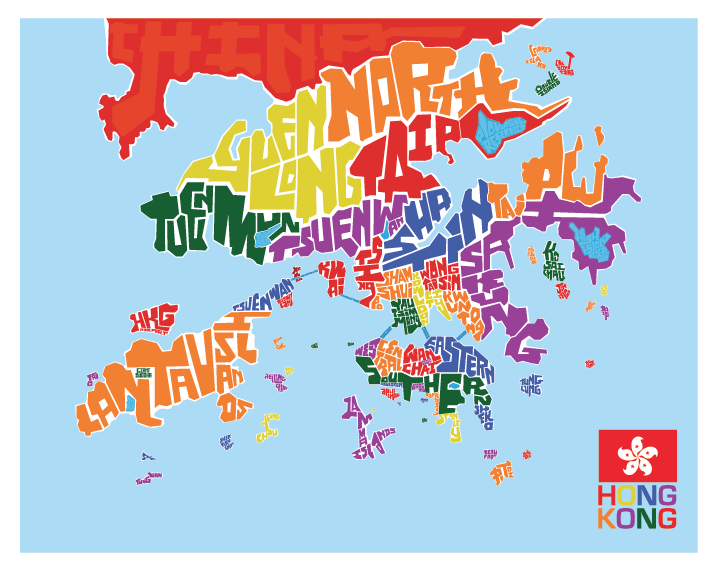 Hong Kong District Type Map โ LOST DOG Art & Frame