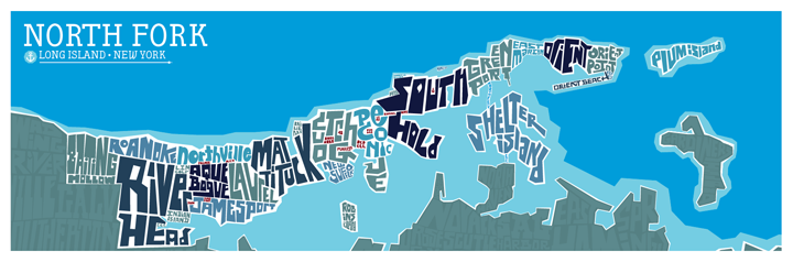 The North Fork Typography Map โ LOST DOG Art & Frame